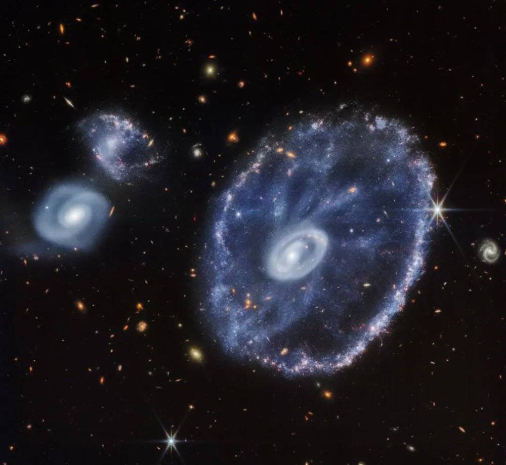 韋布望遠鏡拍攝的圖像提供了一個全新的視角,讓我們看到了車輪星系數十億年來的變化。